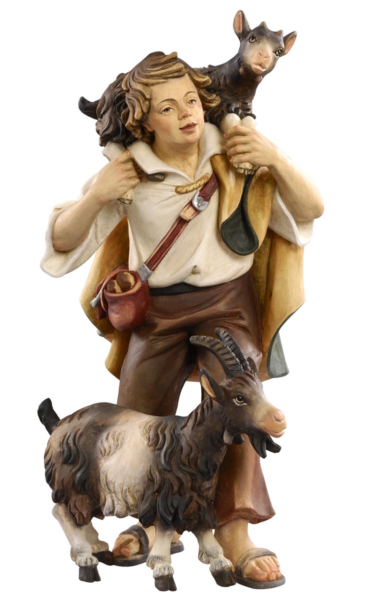 This is a wonderful hand carved and hand painted figurine of a Shepherd with two goats.