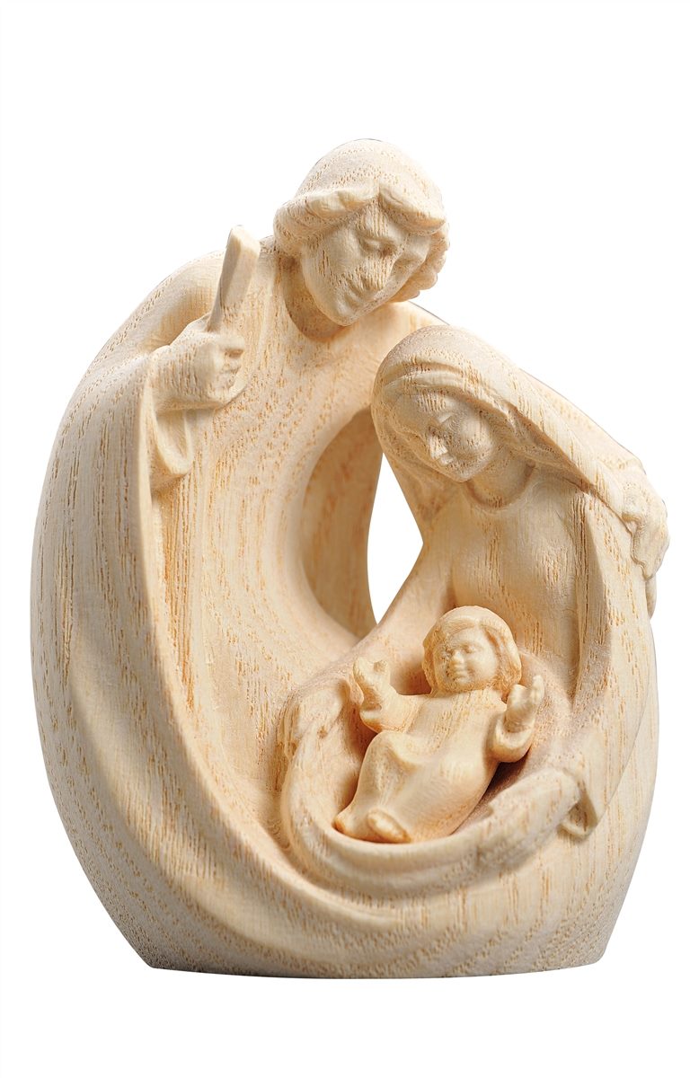 The Holy family, hand carved into a single piece of Maple wood and hand painted in colors by professional artists. A very charming piece. The Jesus child is not attached to the main sculpture. This beautiful wood carved collectible Nativity is available in different sizes.